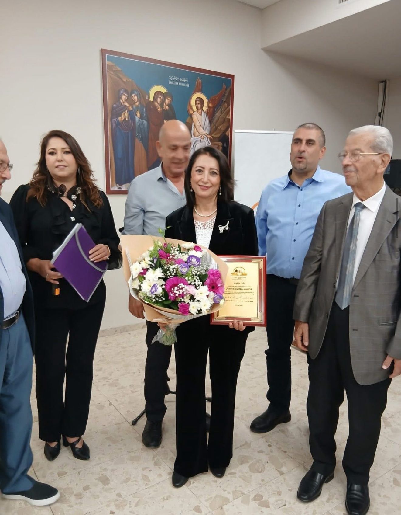 واختُتمت الأمسية بفقرةٍ تكريميةٍ أعدّها المنتدى تقديرًا لمسيرة د. روز اليوسف شعبان الأدبية وإسهامها في المشهد الثقافي المحلي، "وفي ختام الأمسية، قدّمت إدارة مجلس الطائفة الأرثوذكسية، بمشاركة أعضاء منتدى الناصرة الثقافي، هدايا تذكارية للضيوف المشاركين في برنامج الأمسية، تقديرًا لمساهماتهم القيّمة ومشاركتهم الثرية.