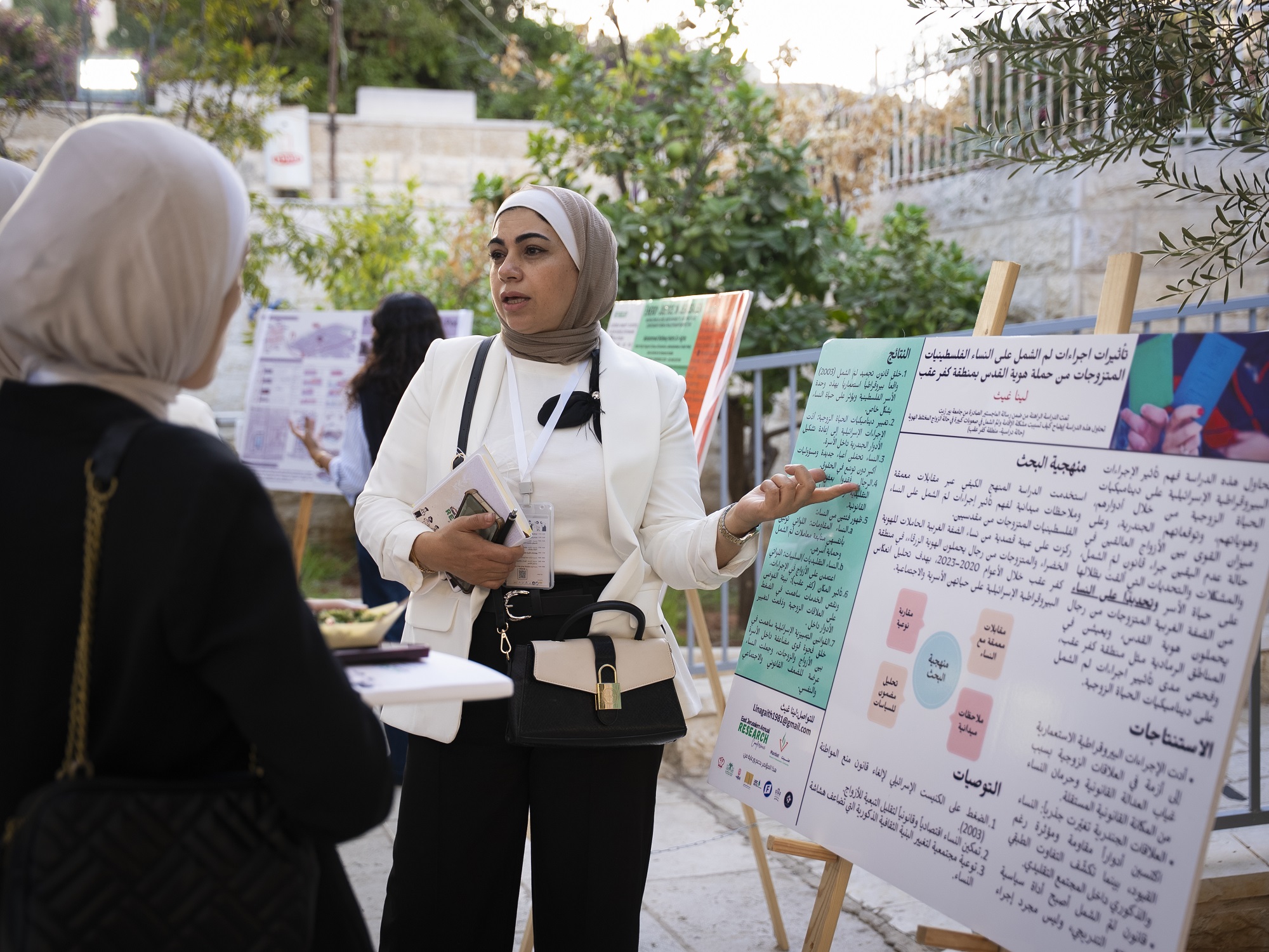 أما الجلسة الثانية، فخصصت لعرض ملصقات بحثية تفاعلية تناولت تجارب وأصواتا فلسطينية متنوعة، وأتاحت للباحثين الشباب مساحة للتشبيك وتبادل المعرفة الأكاديمية وعرض نتاجهم البحثي.
