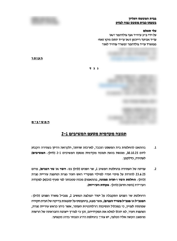 قدمت وزارة الداخلية، قبل أيام، ردها الأولي لمحكمة العدل العليا بشأن الاستئناف الذي تقدم به علي سلام ضد قرار تنحيته من منصب رئيس بلدية الناصرة.
