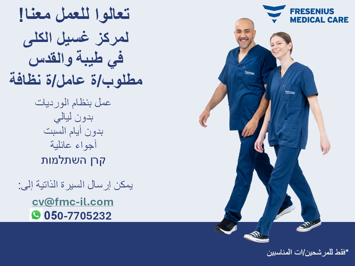 تعالوا للعمل معنا لمركز غسيل الكلى في الطيبة والقدس