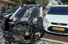 اشتعال سيارة بعد انقلابها بحادث طرق ذاتي في حيفا