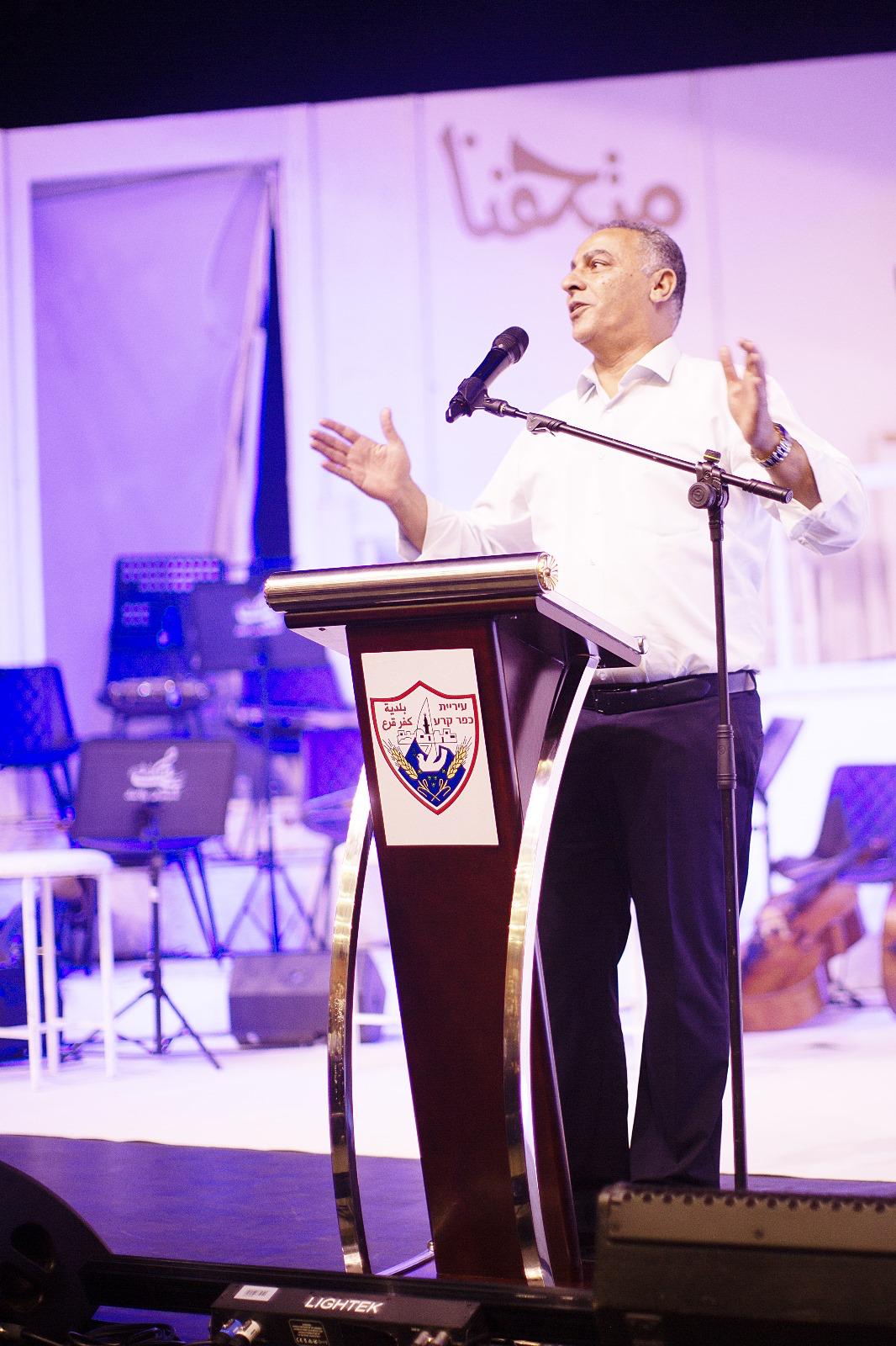 ثم اعتلى المسرح المحامي فراس احمد بدحي، رئيس بلدية كفرقرع، الذي عبّر عن فخره واعتزازه بهذا الحدث الثقافي النوعي والحضور العظيم من كل اقطار المجتمع العربي، مشيدًا بالجهود الجبارة التي بذلها القصر الثقافي وقسم الثقافة والتربية اللامنهجية لإخراج هذا المهرحان الى النور بأرقى حلة، وبالحضور الواسع الذي عكس اهتمامًا وطنيًا وثقافيًا من مختلف أنحاء المجتمع الفلسطيني. كما اكد المحامي بدحي عزم البلدية للمضي قدماً بتقديم برامج ثقافية مميزة تتناسب مع ثوابتنا المجتمعية، الوطنية، التاريخية والدينية تعزيزا لكون كفر قرع عاصمة الثقافة العربية في البلاد ومزارا لكل افراد المجتمع، مشيدا بدور الثقافة بدحر آفة العنف والجريمة وانعكاساتهما المقيتة على مجتمعنا.