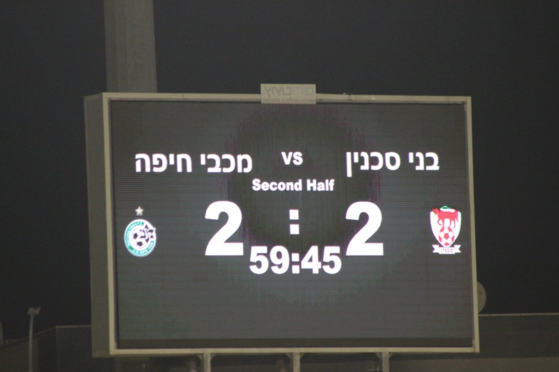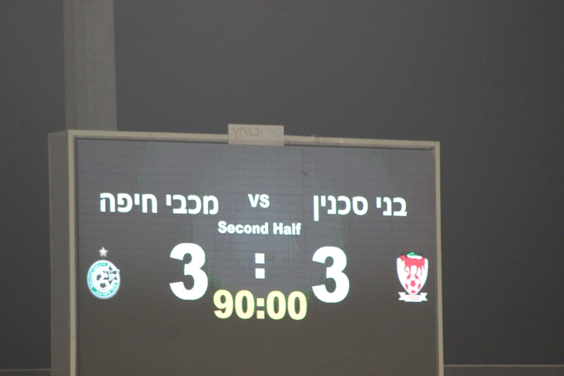 في الدقيقة الأخيرة من المباراة ارتكب مدافع مكابي حيفا ليحتسب الحكم ضربة جزاء بعد مراجعة تقنية الفار ونجح احمد سلمان من احراز هدف التعادل 3-3. ونجح حارس مكابي حيفا من منع خسارة فريقه في الوقت بدل الضائع بتصديه لكرة قوية من لاعب سخنين كورسيا.