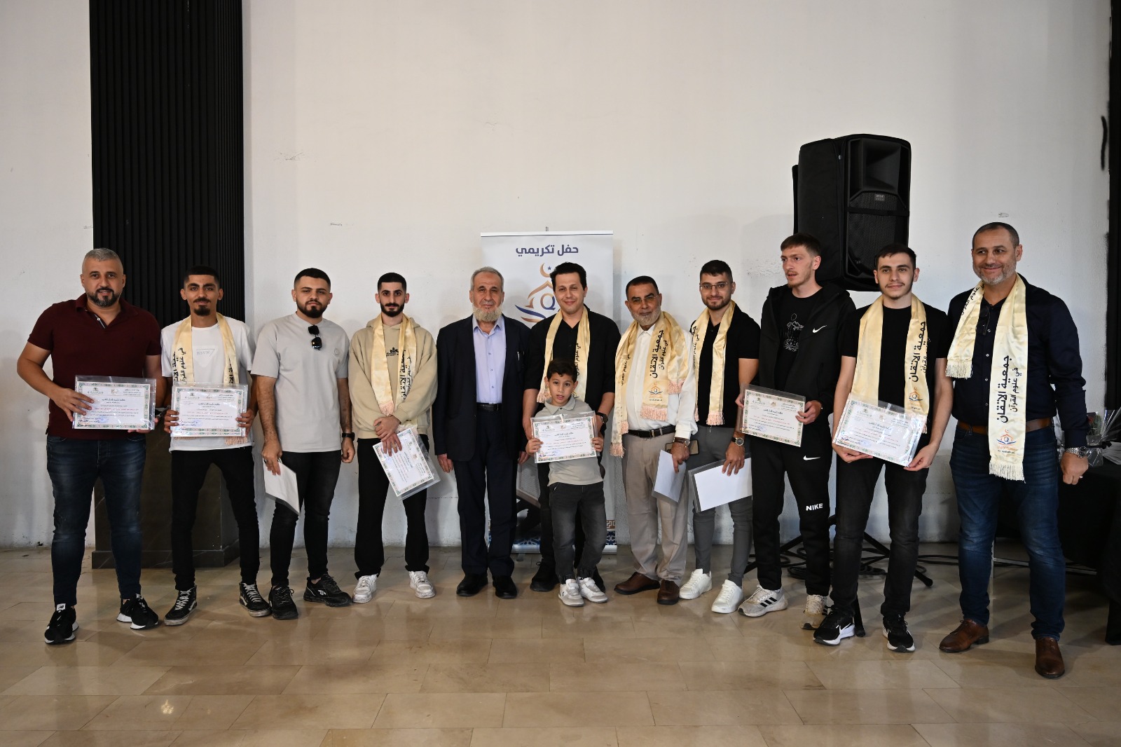 وافتُتحت الليلة بتلاوةٍ نديّةٍ من صوتيْ المقرئين هيثم بدران من عين السهلة ورضا عمارية من إبطن، تلتها كلمة الشيخ عبد الحكيم -مدير جمعية الإتقان- والتي حملت دفء المربّي وصدق العالِم، فذكّر ببركة القرآن التي تحيا بها القلوب وتستنير بها العقول، وأوصى أبناء الإجازة أن يجعلوا همّهم الإتقان لا الشهادة، والعلم لا المظاهر، وأن يظلّوا أوفياء لمعلّميهم الذين أناروا لهم الطريق.