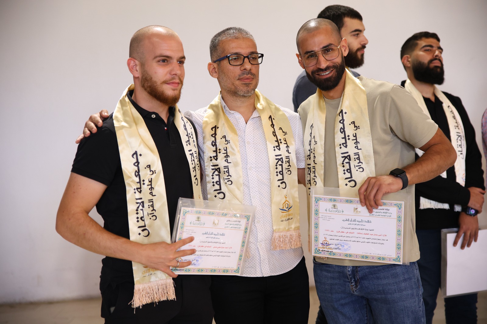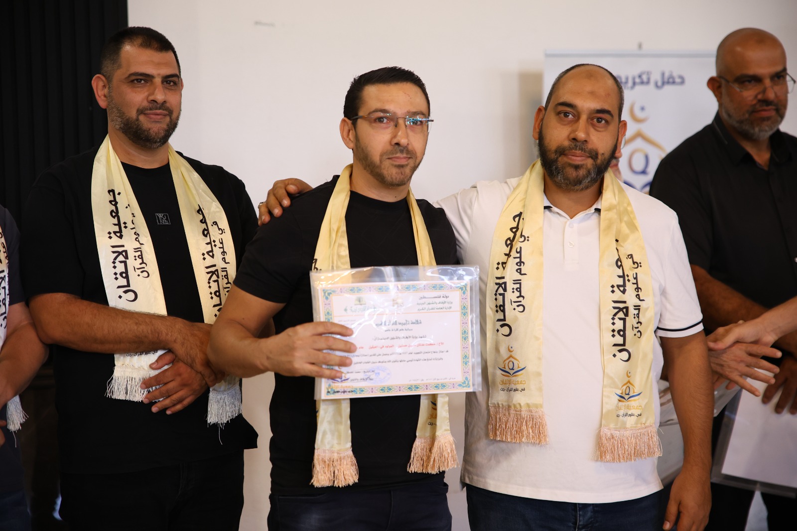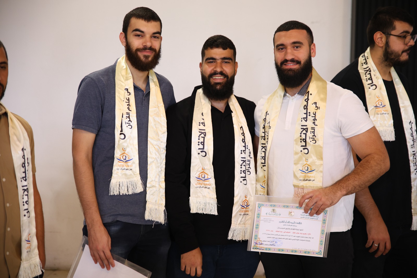وفي ختام الليلة، علت وجوه المجازين فرحةُ التتويج، وقد كُرّم الأوائل من المجازات والأوائل من المجازين بجوائز مادّيّة، ليتبع ذلك تكريم بقية المجازين والمجازات بالإجازة في تلاوة القرآن، ليبقى الختام مسكًا تعبق به ذاكرة كل من حضر، وتظلّ جمعية الإتقان منارةً مضيئةً في خدمة كتاب الله وأهله.
