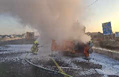 ازدحامات مرورية خانقة في مركز البلاد: احتراق شاحنة على شارع 1 قرب مطار بن غوريون وحادث طرق على شارع 4 | تصوير: سلطة الاطفاء والانقاذ