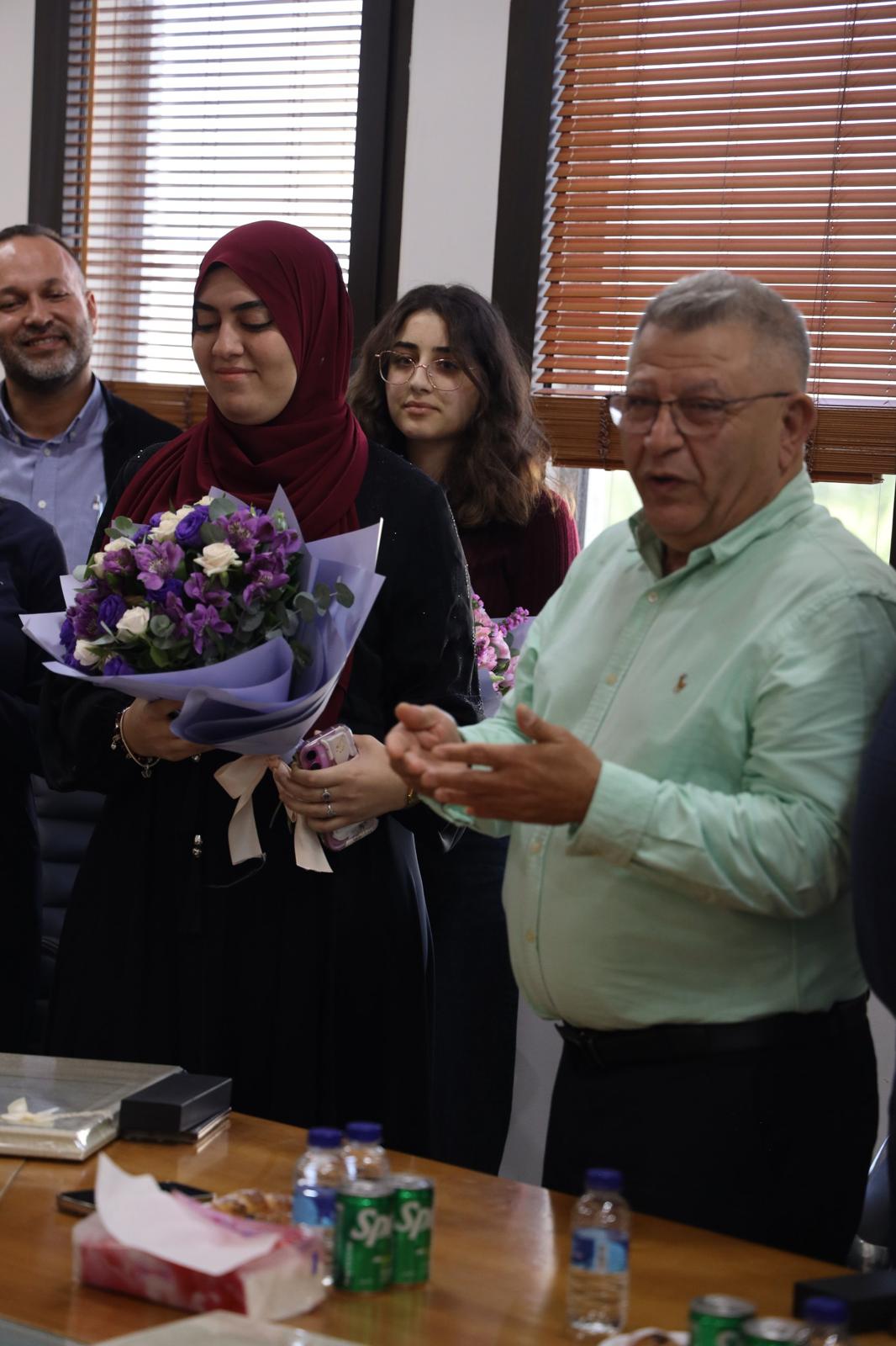 إلى جانب مدير المدرسة الأستاذ أيمن اغبارية، والمربية رنا طيارة، وعدد من أفراد الطاقم.