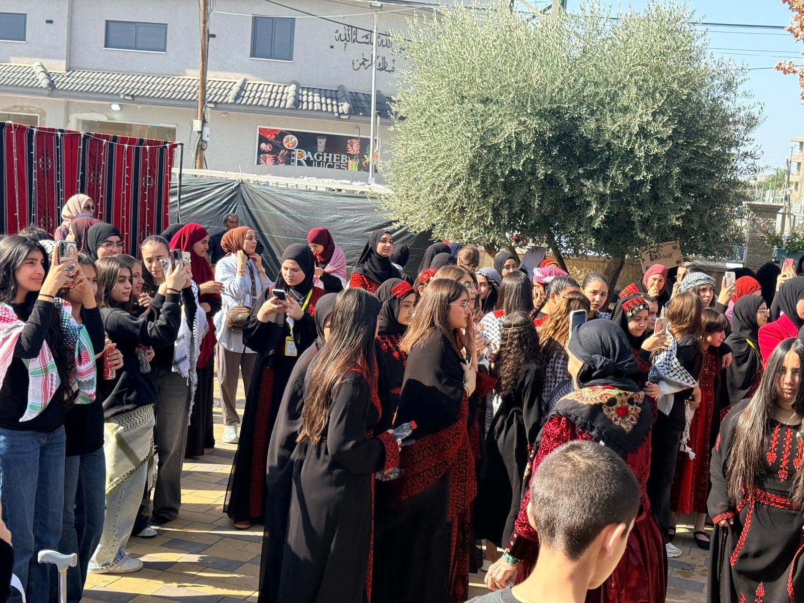 واستقبلت المدرسة أيضًا أكثر من سبعين من أولياء الأمور ممثلين عن كل صف وبحضور لجنة اولياء الامور المدرسية ورئيسة اللجنة د.اثار سمارة، ليكونوا شركاء حقيقيين في يوم التراث، وليشاركوا الطلاب لحظات الفخر بهويتهم. وقد شرفنا حضورهم، وكرّمناهم بذكرى رمزية مستوحاة من تراثنا ، مرفقة برسالة شكر وامتنان على مشاركتهم، وهي الهدية ذاتها التي قدّمناها للمسنّات تقديرًا لوجودهن المبارك بيننا.