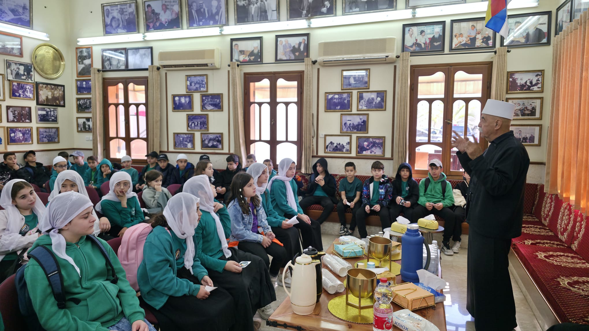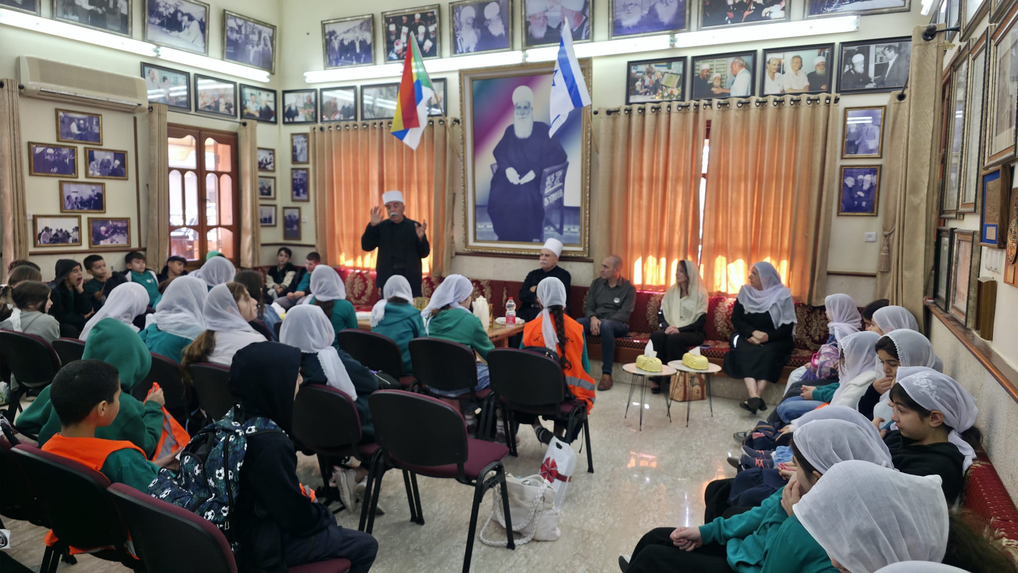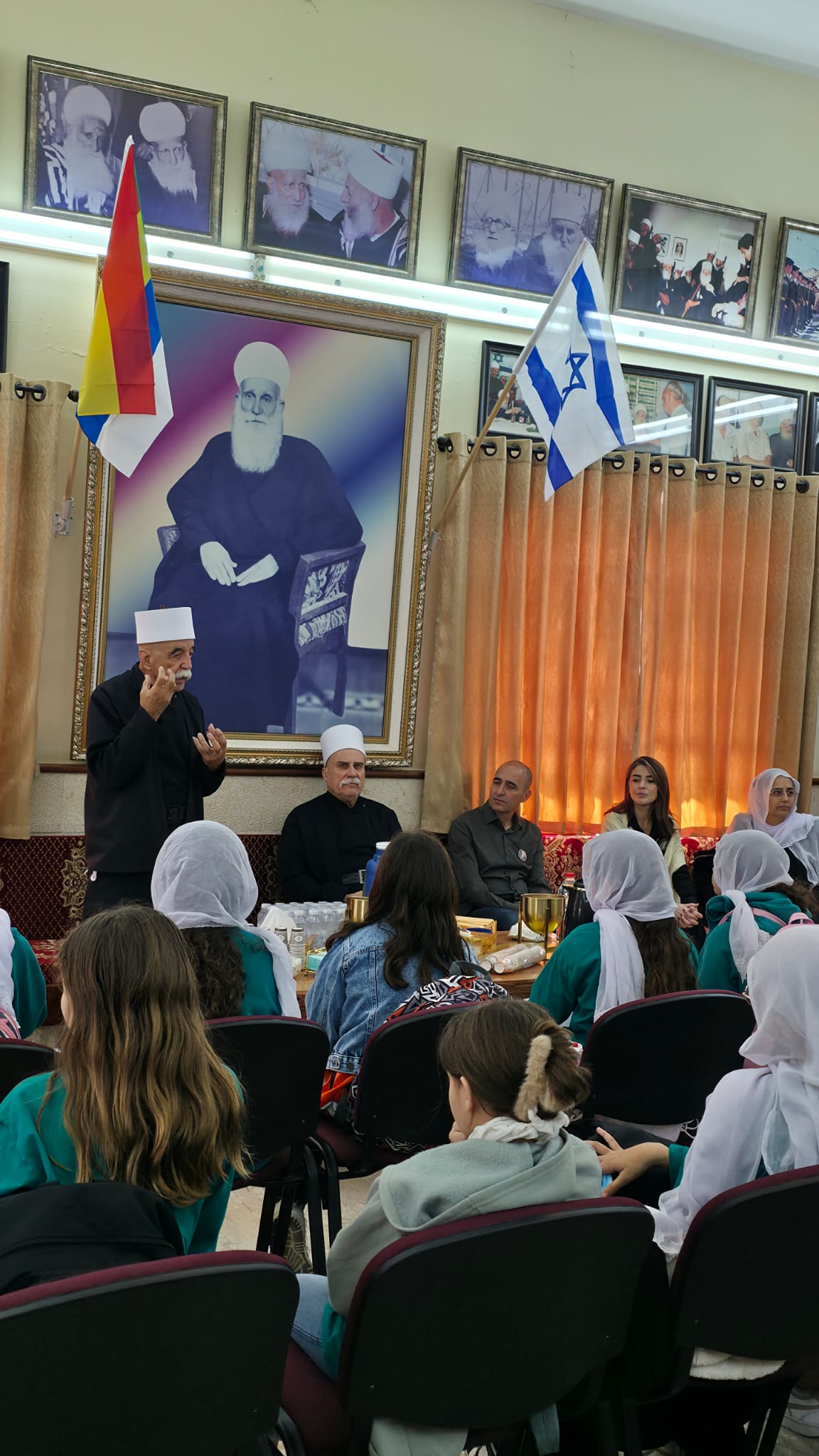 وازداد اليَومُ بِرَكةً حين تَبارَكَ الطُّلّابُ بِلِقاءِ فضيلة الشَّيخ مُوَفَّق طَريف الرئيس الروحي للطائفة الدرزية، الّذي أصغى لِكلماتِهم، وشَجَّع رِسالَتَهم الإنسانيّة الدّافِئة. كما أَلْقى بَعضُ طُلّابِنا كلماتٍ صادِقةٍ تَنبُضُ بِالمَحبّة والتَّضامُن، وكانَ مِن بَين الفَقَرات قَصيدَةٌ وُجِّهَت إلى سماحةِ الشَّيخ مِن تأليفِ الشّاعر تمير حيساوي – ابنِ البَقيعة – مَشكورًا على مُبادَرَتِه.