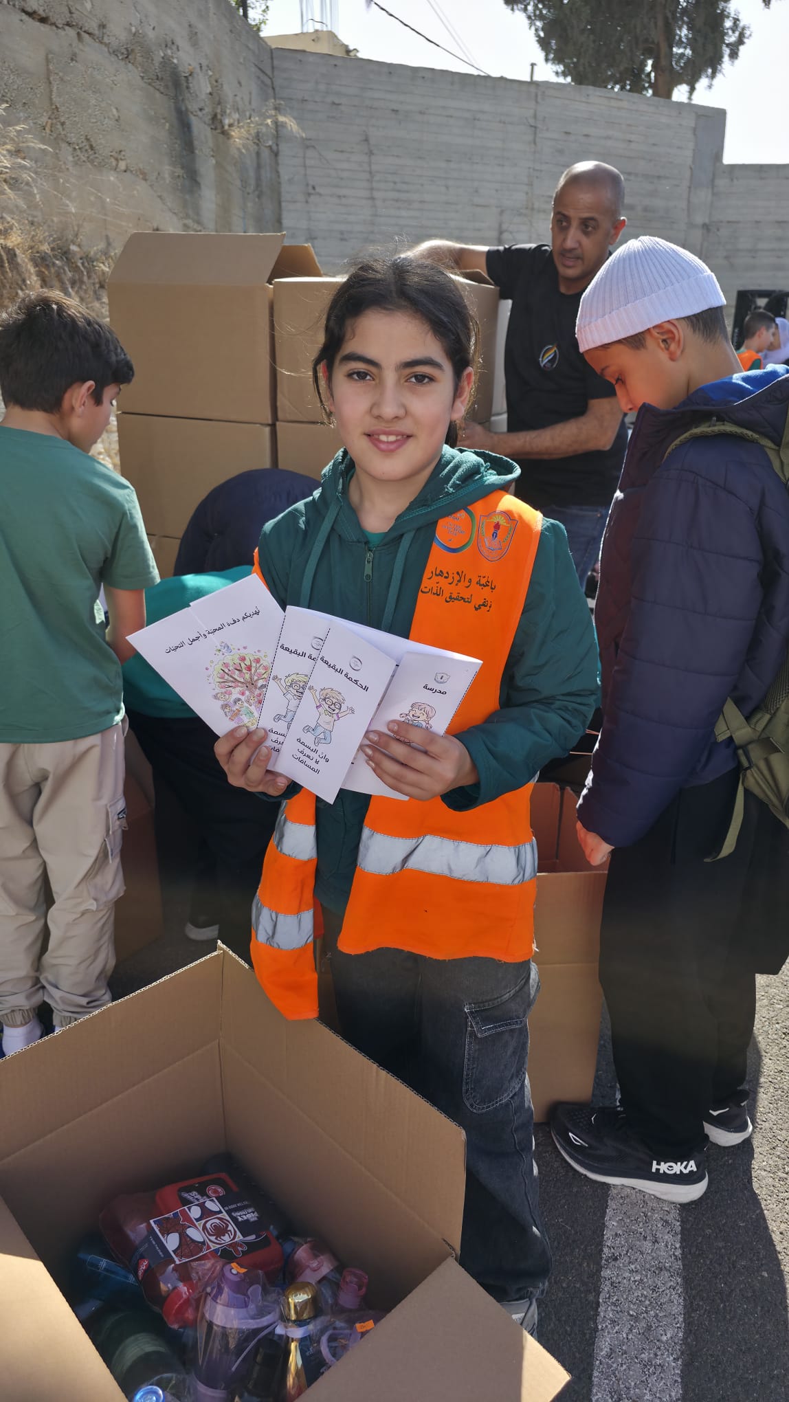 جاء من مدرسة الحكمة الابتائية البقيعة : " بإشرافِ المُعَلِّمَتَيْنِ صابرين عبّاس وسماح خير، مُبادَرةٍ تُنشِئُ في طُلّابِنا رُوحَ العَطاءِ، والتَّعاوُن، والمَسؤوليّة.