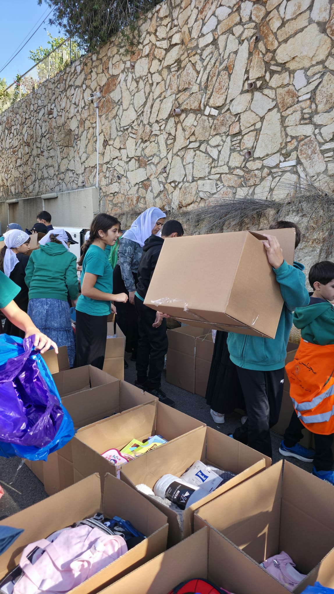 ومع انطلاقةِ المُبادَرة، جَمَعْنا التَّبرّعاتِ من ادوات مدرسية، حقائب، ملابس شتوية وكل ما يلزم الاطفال بِمَحبّةٍ كَبيرة، وامتلأت القُلوبُ بالخير. أحضر جميع طلابُ المدرسة التَّبرّعاتِ بِحماسٍ وتَعاطُف، يُرتّبون الأغراض، ويُضيفون إليها بَطاقاتٍ صغيرة كَتَبوا فيها كلماتٍ دافِئةً تَحمِلُ أَمَلًا وتَعاطُفًا. في كُلِّ لَحظةٍ مِن لَحظاتِ التَّحضير، رأينا القِيَم الّتي نَزرَعُها تَنمو أمامنا: الاحترام، المُشارَكَة، ورُوحُ المَسؤوليّة الّتي تُميّز طُلّابَ مدرستِنا. وهنا لا بُدَّ من توجيهِ الشُّكرِ لِأهالينا الكِرام على تَجاوُبِهِم السَّخيّ، وقُلوبِهِم الّتي دَعَمَت هذه المبادرة.