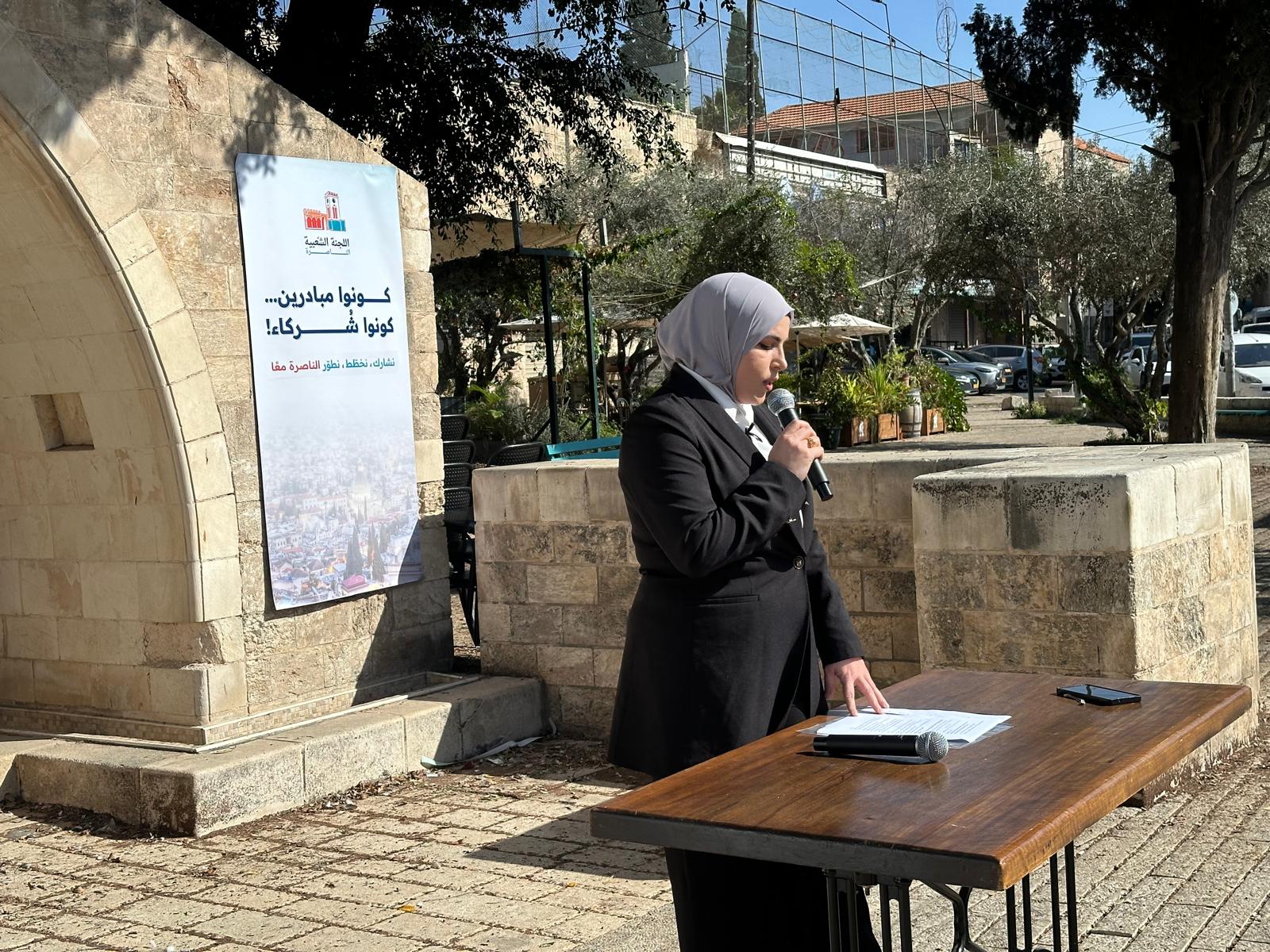 عُقد في ساحة عين العذراء في مدينة الناصرة المؤتمرُ الصحفي الذي دعت إليه اللجنة التحضيرية لإقامة اللجنة الشعبية في الناصرة، وذلك قبيل اللقاء المقرر مع رئيس اللجنة المعيّنة في بلدية الناصرة يعقوب أفراتي.