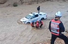 تخليص عالقين جراء الفيضانات وسيول الامطار جنوبي البلاد - تصوير سلطة الاطفاء