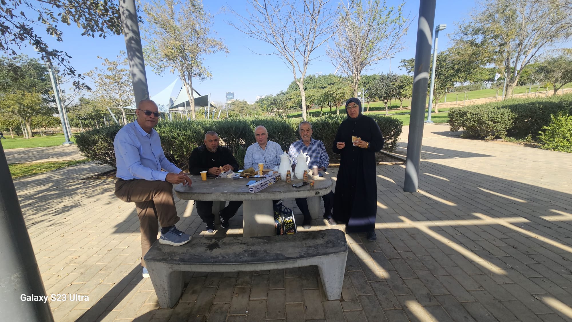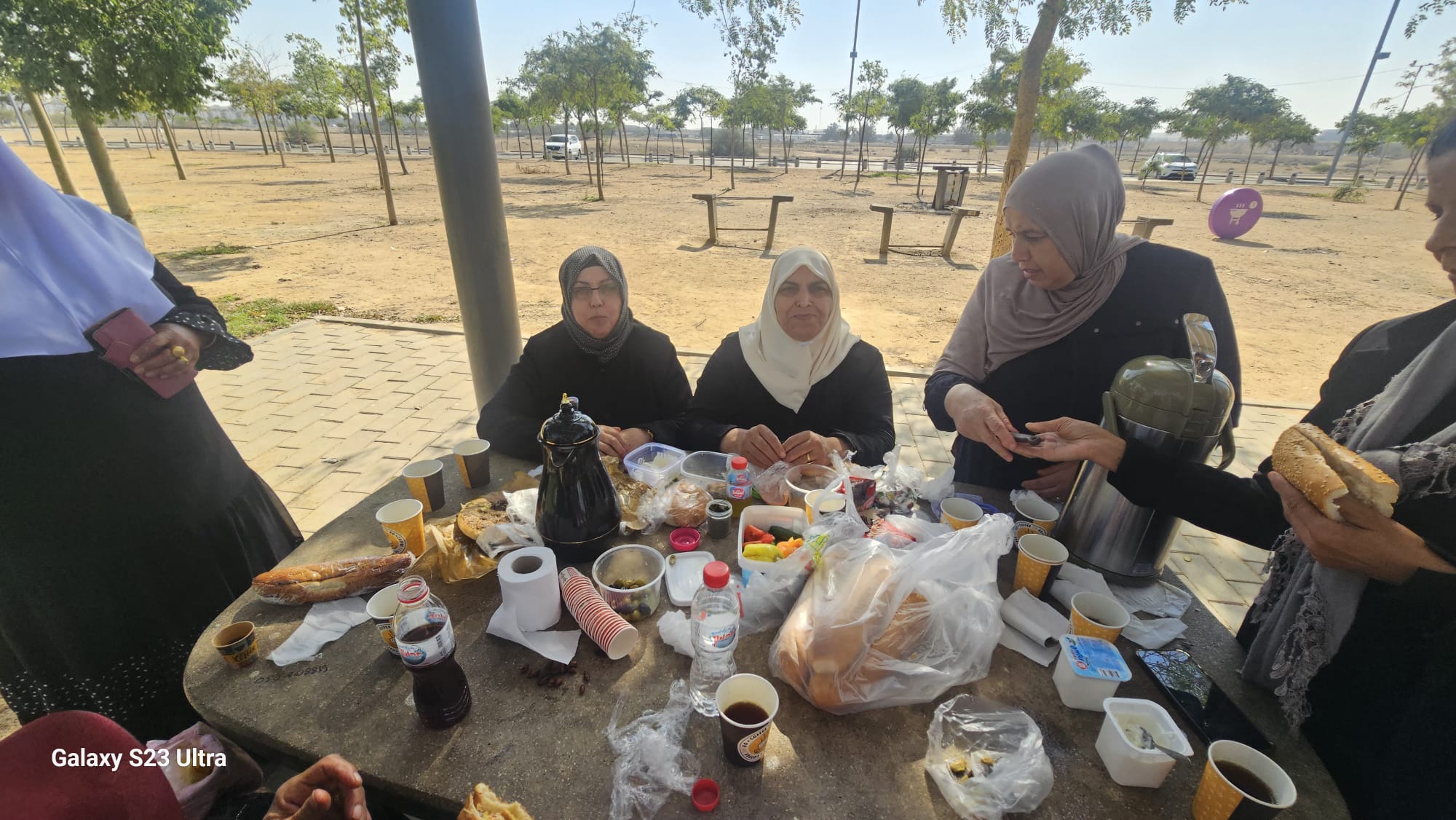 وكان يوم الزيارة قد بدأ بلقاء جمع الطالبات ونساء الديوان على وجبة إفطار صباحية في أحد متنزهات المنطقة، تبعها جولة تعريفية مميزة في النقب بإرشاد الأستاذ خليل العمور الذي قدّم شرحاً وافياً عن تاريخ القرى وتحديات الحياة فيها.