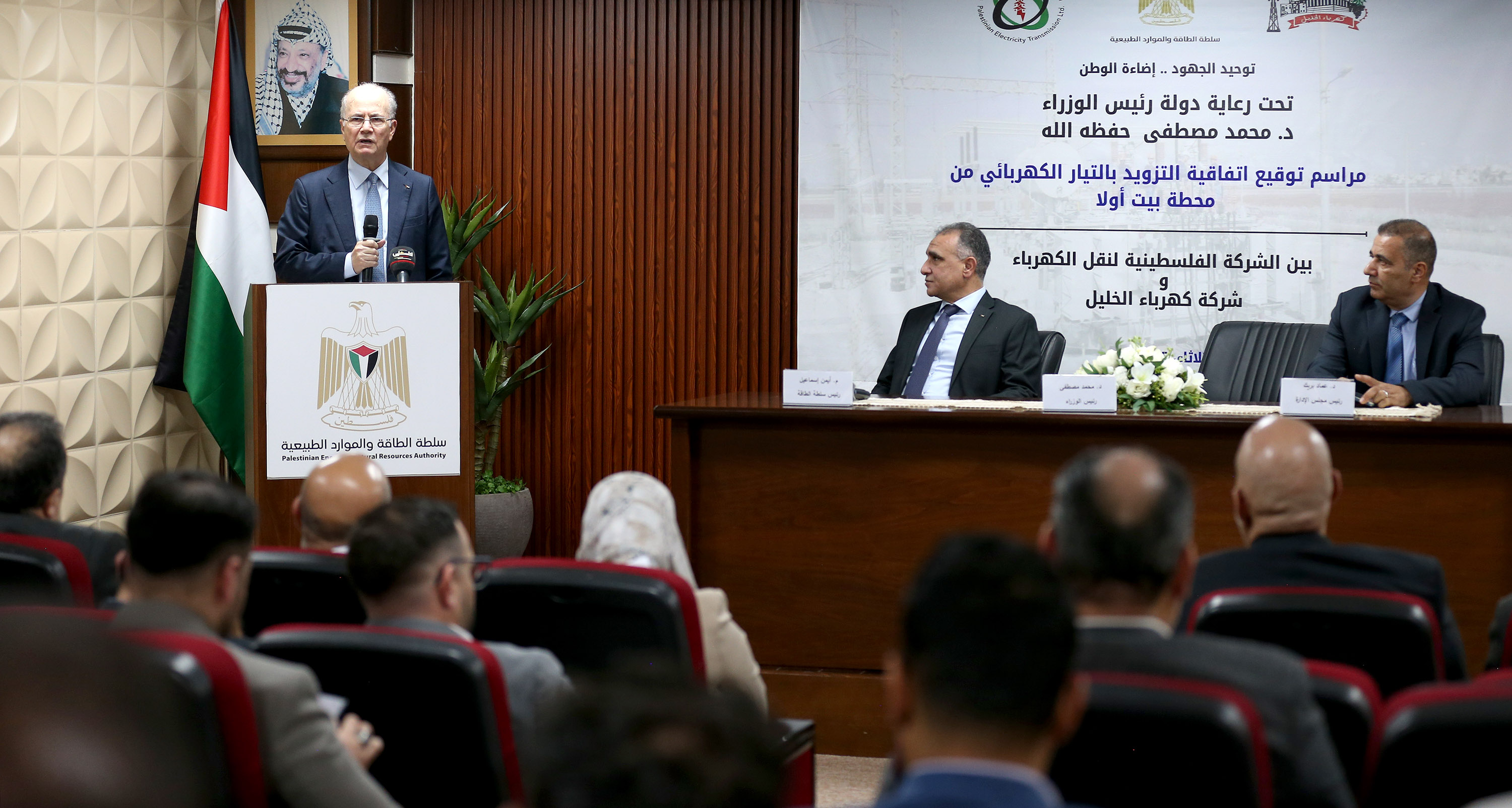 برعاية وحضور رئيس الوزراء د. محمد مصطفى، جرت مؤخرا مراسم توقيع اتفاقية تزويد مدينة الخليل بالتيار الكهربائي من محطة بيت أولا من خلال الشركة الفلسطينية لنقل الكهرباء لصالح شركة كهرباء الخليل وبتمويل من البنك الدولي،