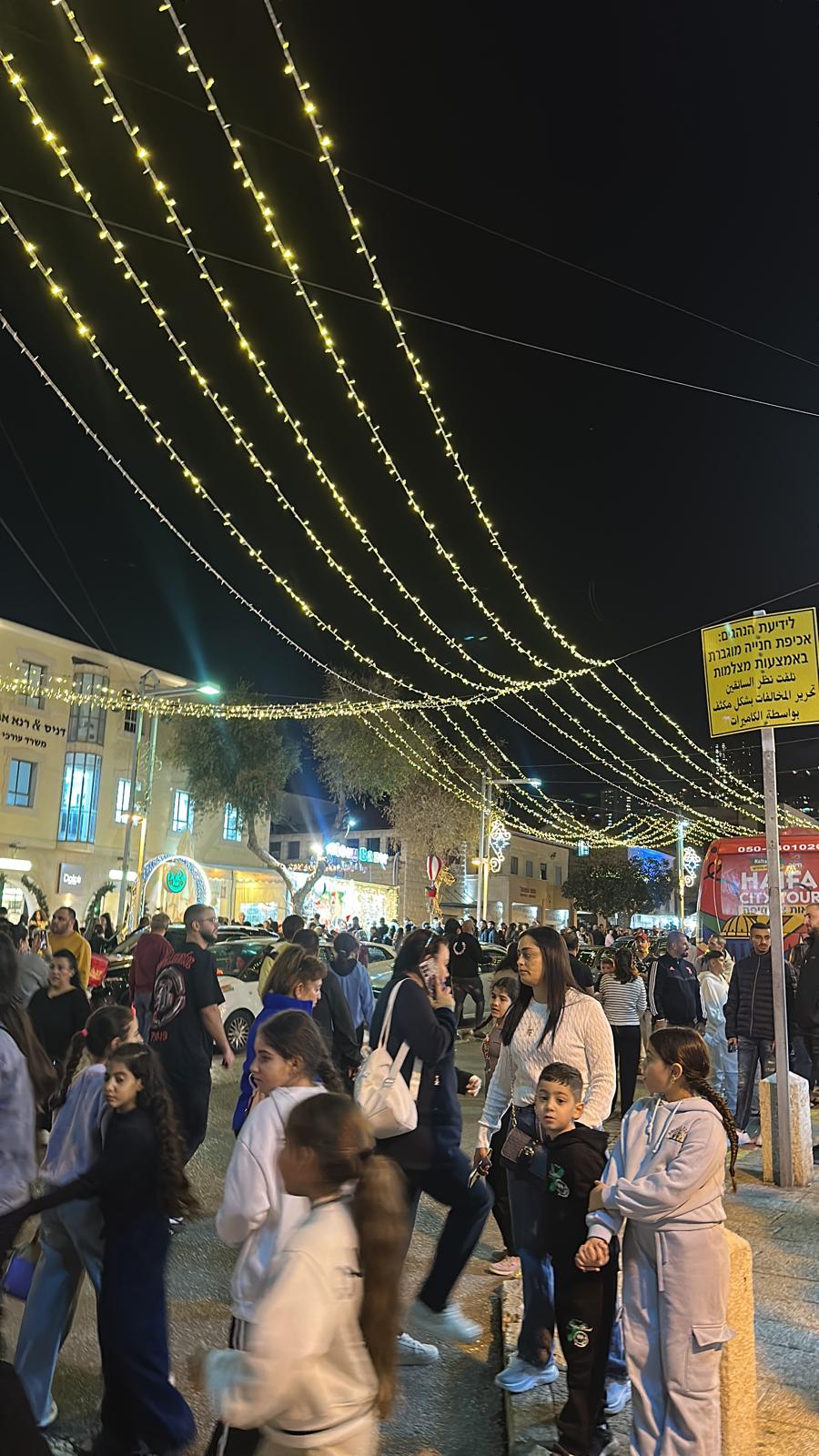 شهدت مدينة حيفا مساء اليوم الإثنين، أجواء احتفالية مبهجة تزيّنت خلالها الجادّة الألمانية بإضاءة رموز الأعياد، وفي مقدّمتها شجرة عيد الميلاد الكبيرة، في لوحة مضيئة تجمع بين الفرح والألوان وروح التعايش التي تميّز المدينة.