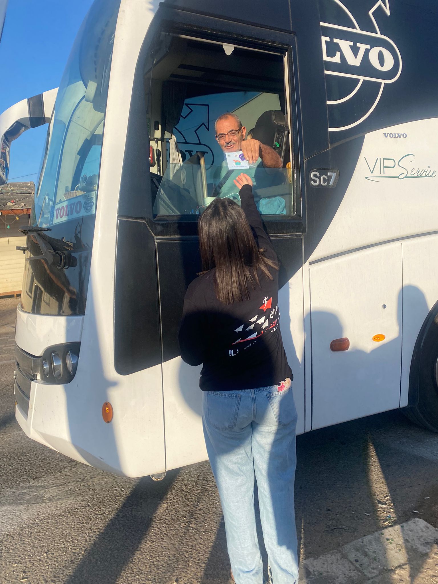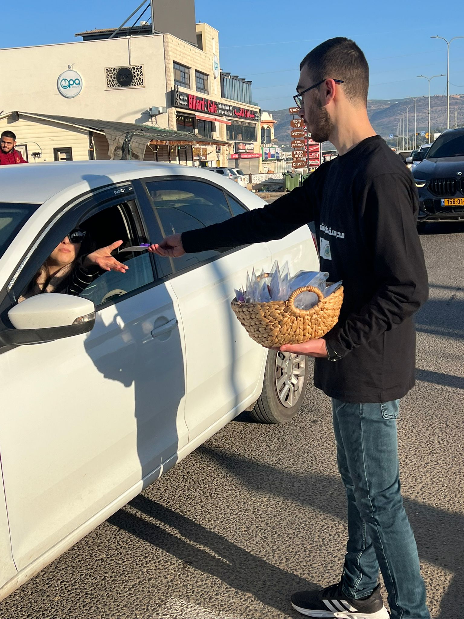 لم يقتصر دور الطلاب على رفع اللافتات، بل تقدموا للمارة مُوزّعين بطاقات تحوي مقولات مأثورة عن التسامح والسلام ، مرفقة كل منها هدية رمزية .