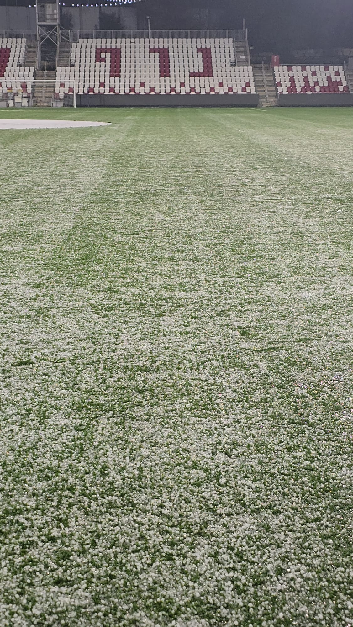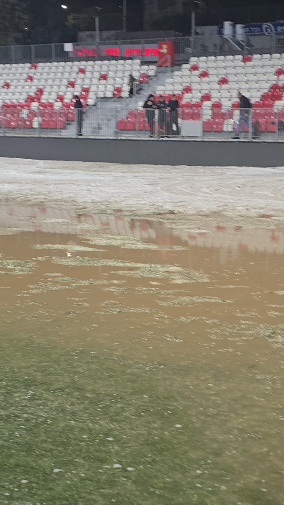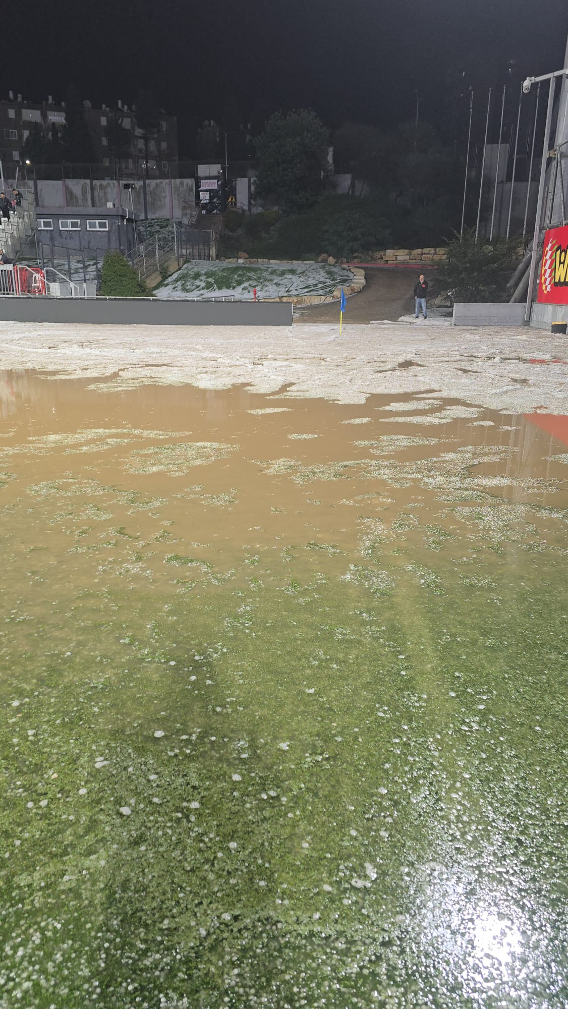 وافاد مراسل قناة هلا وموقع بانيت، انه قبل وقت قصير من انطلاق المباراة، اجتاحت المنطقة عاصفة بَرَد غير عادية غمرت الملعب وموقف السيارات، وغطت أرضية الملعب باللون الأبيض. بعد عدة فحوصات وتقييمات، تبين أن الملعب غير صالح لإقامة اللقاء. تم تأجيل موعد بدء المباراة عدة مرات، أولًا لعشر دقائق ثم لنصف ساعة، لكن بعد محاولات فاشلة لتصريف المياه، تقرر رسميًا إلغاء المباراة.