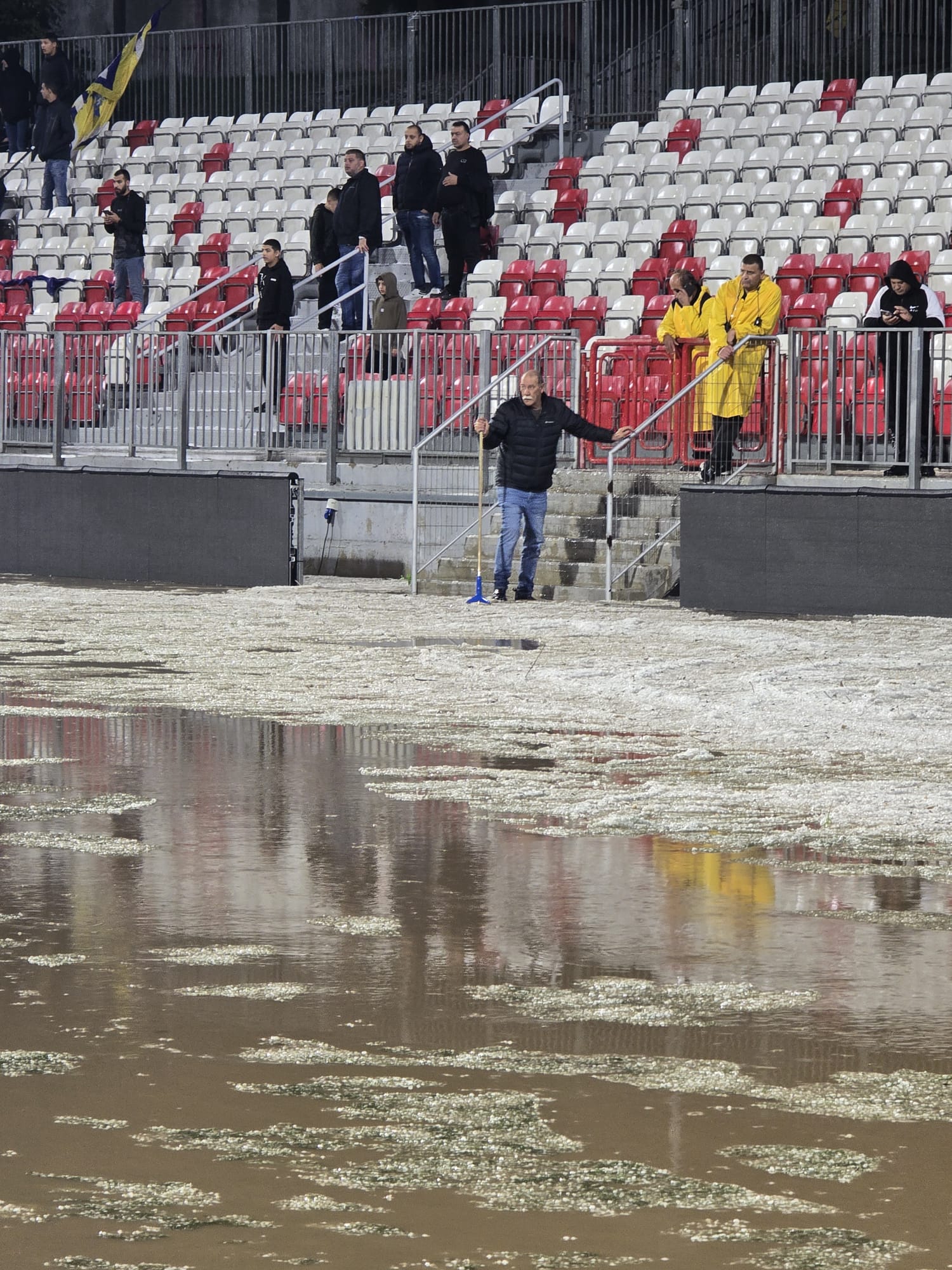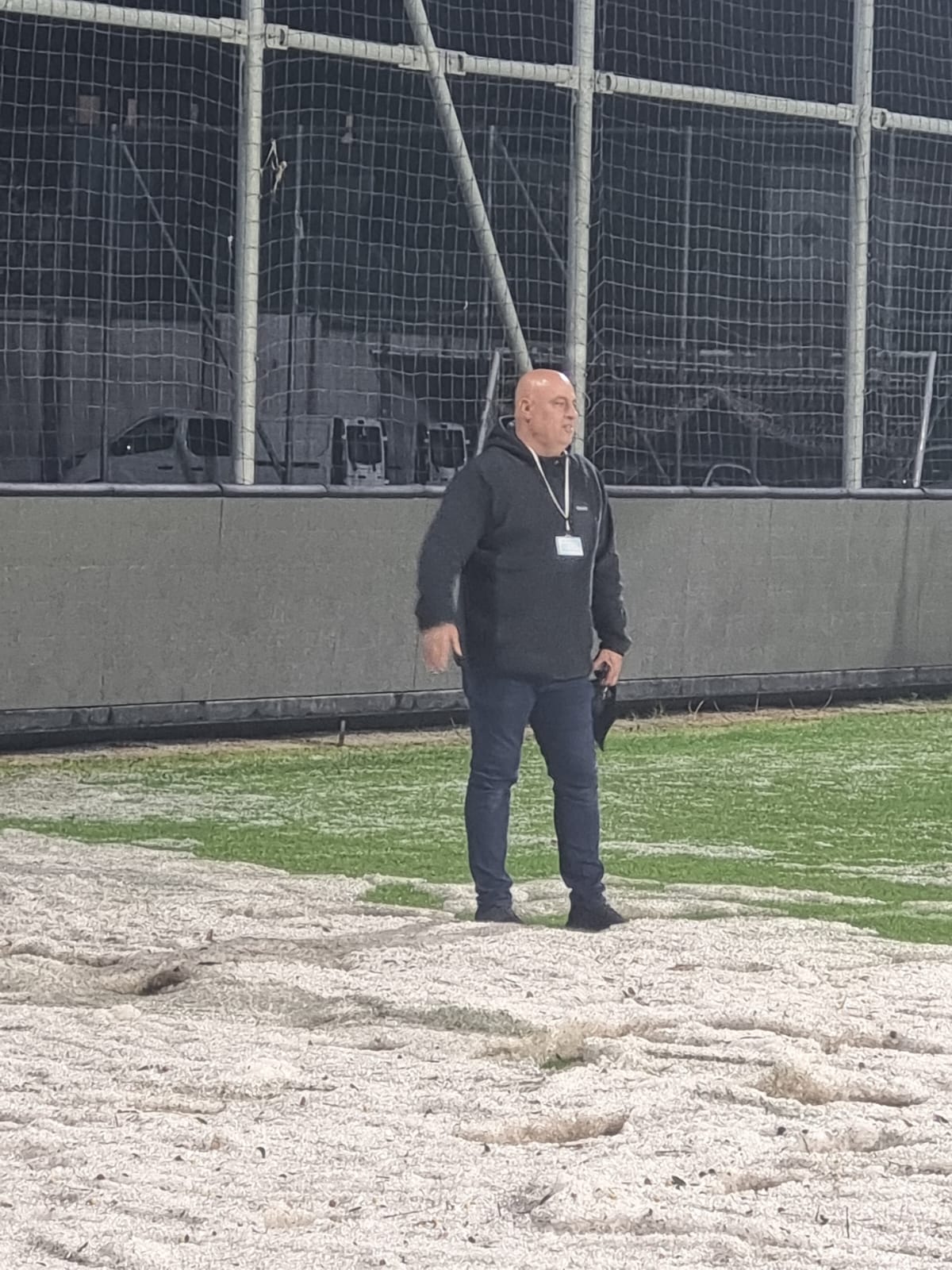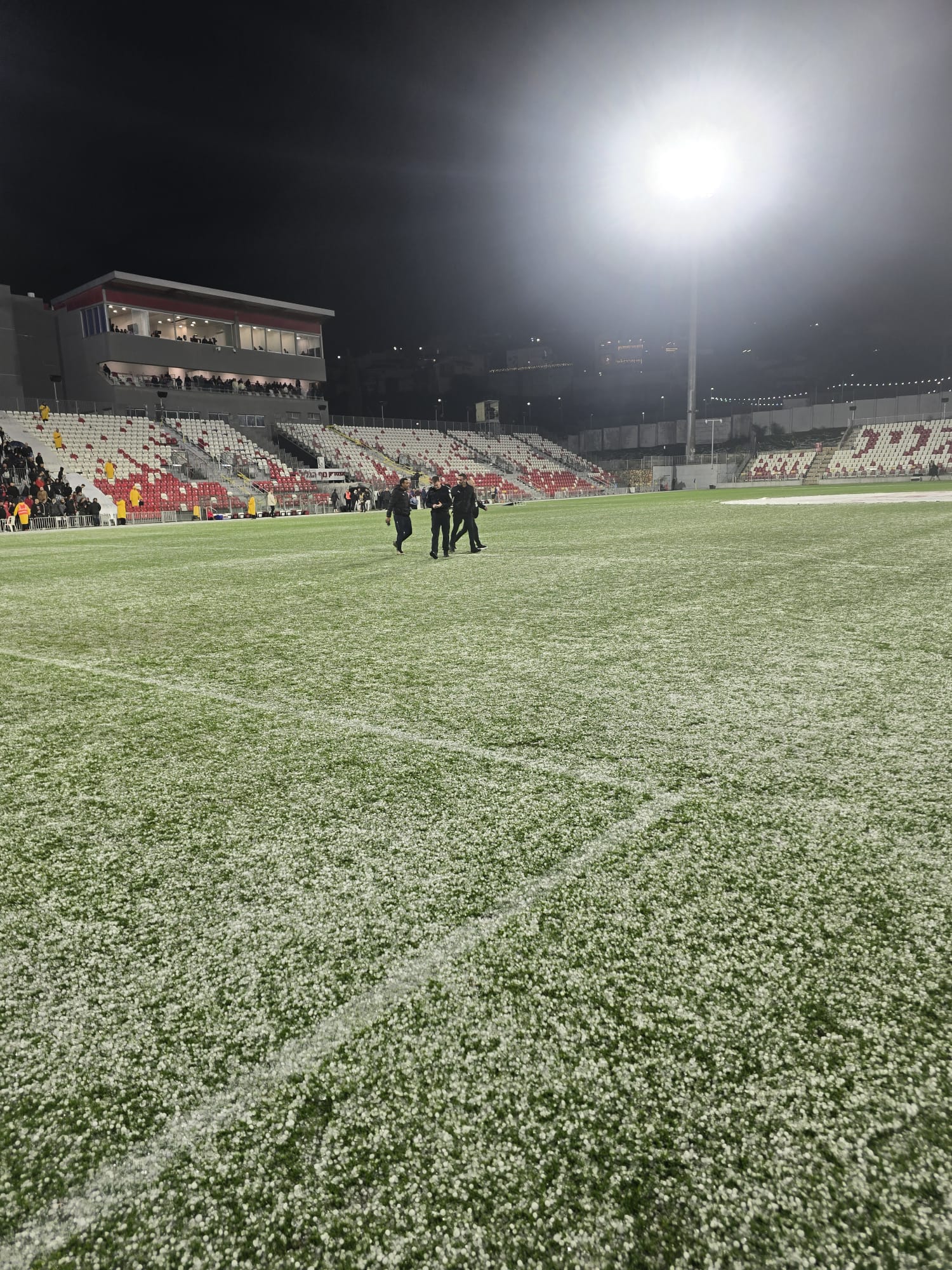 وافاد مراسل قناة هلا وموقع بانيت، انه قبل وقت قصير من انطلاق المباراة، اجتاحت المنطقة عاصفة بَرَد غير عادية غمرت الملعب وموقف السيارات، وغطت أرضية الملعب باللون الأبيض. بعد عدة فحوصات وتقييمات، تبين أن الملعب غير صالح لإقامة اللقاء. تم تأجيل موعد بدء المباراة عدة مرات، أولًا لعشر دقائق ثم لنصف ساعة، لكن بعد محاولات فاشلة لتصريف المياه، تقرر رسميًا إلغاء المباراة.