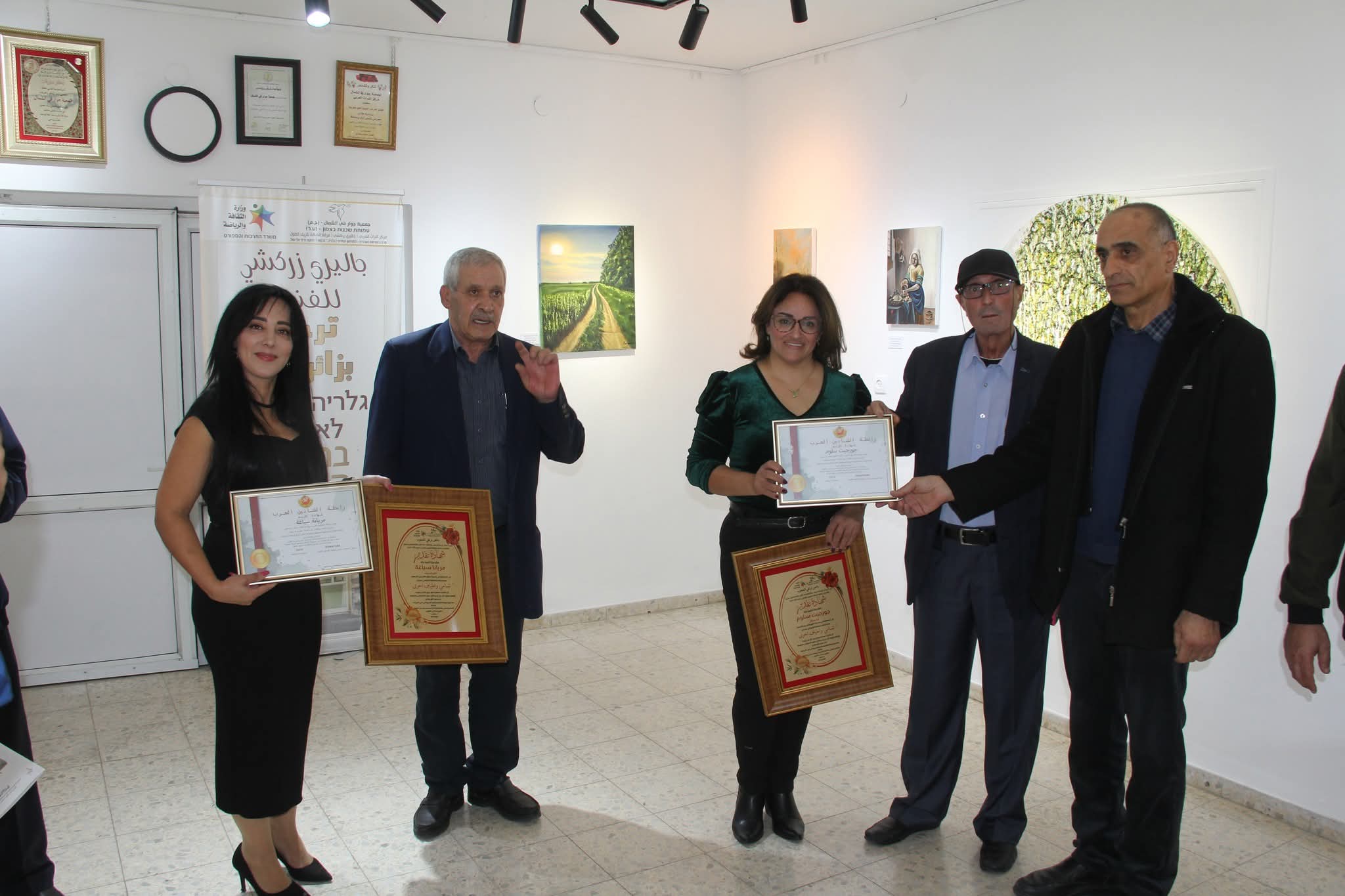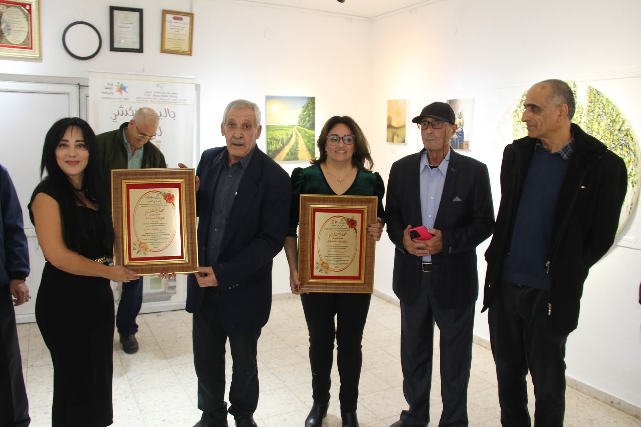 هذا وتم تكريم الفنانتين بشهادات تقديرية لمشاركتهما الفاعلة ضمن الاعمال الفنية التي تعرضها إدارة جاليري زركشي لعامة المواطنين، كما وقام الفنان سليم السعدي بتقديم شهادات تقديرية للفنانتين.
