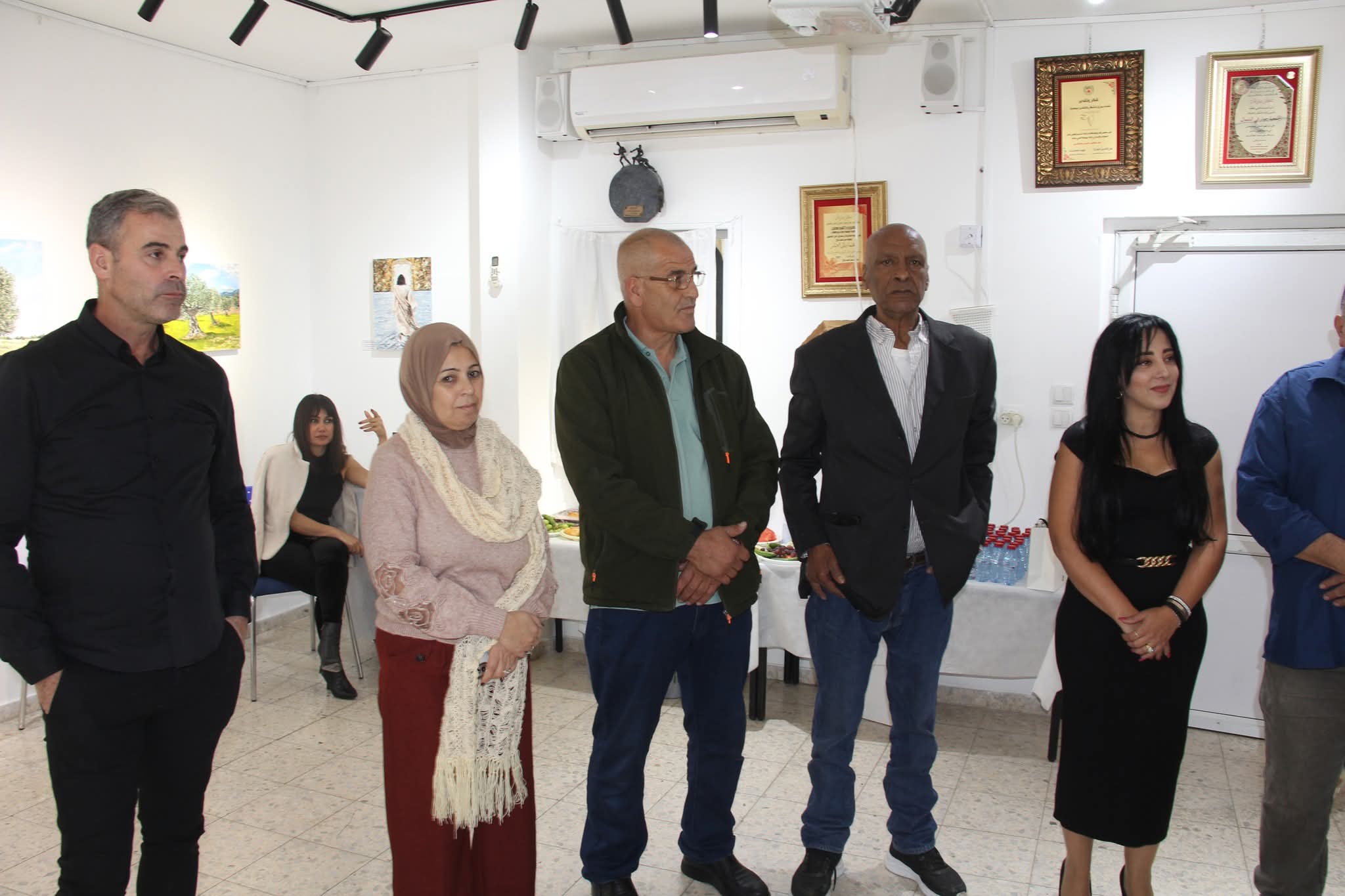 وتحدث في حفل الافتتاح كل من الأستاذ صبحي سرحان، والفنان سليم السعدي، والفنانتين المحتفى بهما، وقد قدمتا الشكر لكل من شاركهما هذا الحفل بافتتاح معرضهما في سخنين، وتطرقتا الى نبذة عن حياة كل واحدة منهما، مع التأكيد على أهمية الفن بأن يرتقي بالإنسان الى مصافي التفاهم الاجتماعي، ورسم كل ما هو إيجابي، ويبعث على الراحة والطمأنينة، كما واختتم الحفل مع الفنان خالد أبو علي مدير مسرح عكا بمقطع تمثيلي ارتجالي.