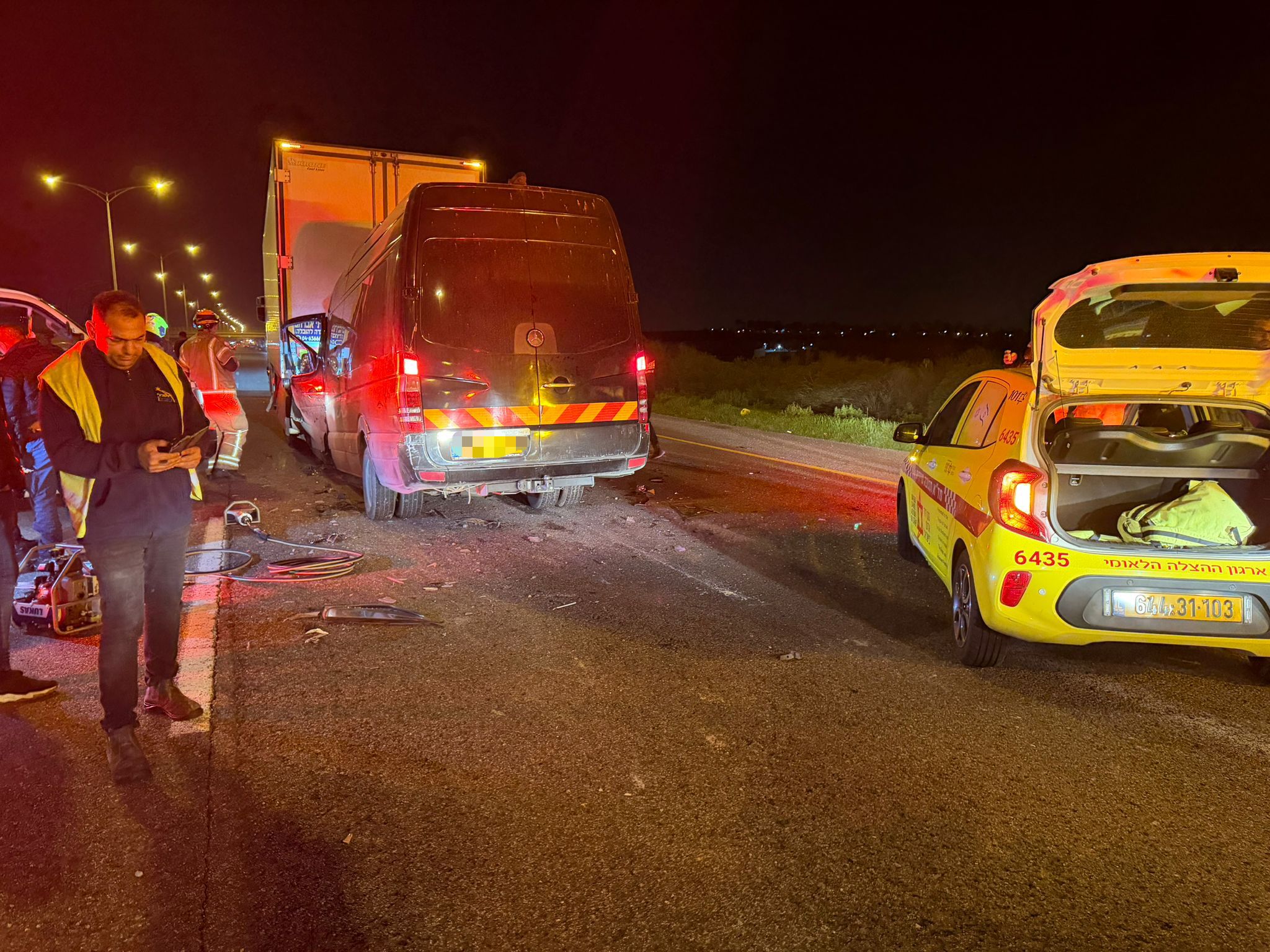 ورد بلاغ إلى مركز الطوارئ 101 التابع لنجمة داوود الحمراء في منطقة الشارون حول حادث طرق بين شاحنة وحافلة صغيرة على شارع 6 بالقرب من مفرق باقة جت. وأفاد المسعفون بوجود رجل يبلغ نحو 40 عامًا عالقًا داخل المركبة وفاقدًا للوعي، اضطروا في وقت لاحق لإقرار وفاته في المكان.